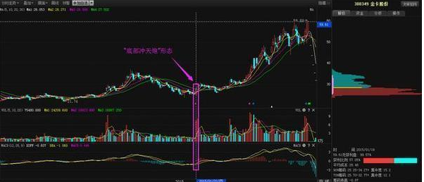 3、底部冲天炮比较适合大跌之后的行情走势进行买入操作;